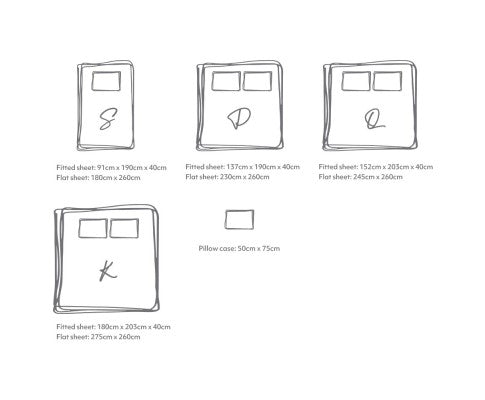Single fitted sheet: 91cm x 190cm x 40cm
