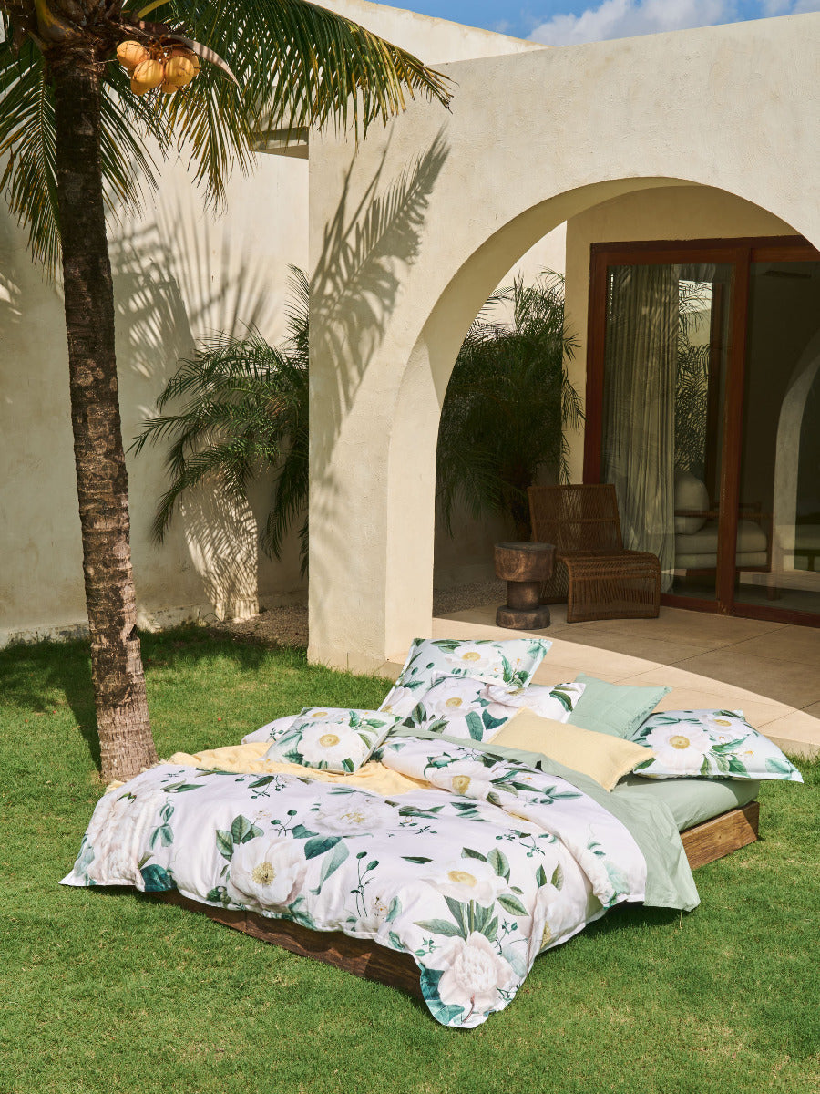 Beautifully detailed and large-scale, this lovely palette is printed across cotton sateen to trigger those luxe summer sleep-ins we all dream of.