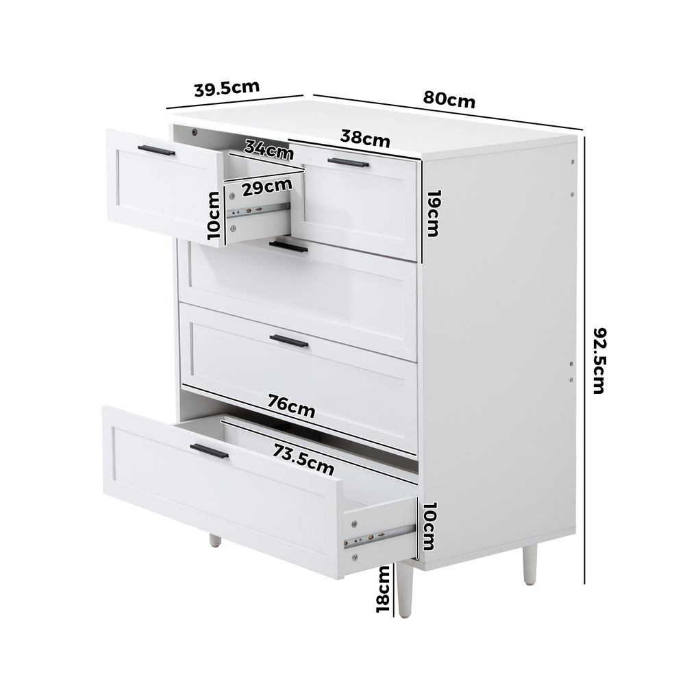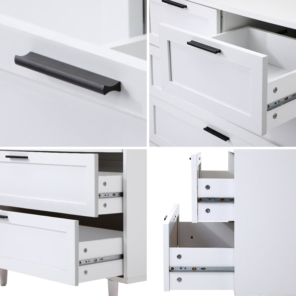 Regular price $299.00 Sale price $239.00 Save 20%This eye-catching piece from Oikiture is ready to grace your esteemed home with exquisite finesse. Displaying a very practical and equally stylish design, our chest of drawers features an immaculate white finish with sculpted front drawer panels to create interesting aesthetics with depth and character. Thoughtful touches that render a unique presence.