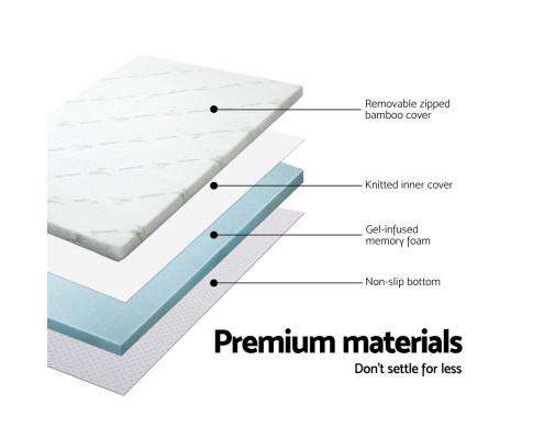 Regular price $185.95 Sale price $119.00 Save 36%Add that extra bit of comfort to your mattress. An extra 5cm to be precise with our cool gel mattress topper. And the difference is simply wonderful. That’s because our topper provides palpable relief to your pressure joints no matter how you sleep, a cooler sleeping surface and not least, individual contouring of your body shape thanks to the memory foam. The memory foam also helps to even body weight distribution, eliminate motion disturbance and dissipate body heat to keep your rest nice and cool. Eco-friendly in every way with its highly breathable bamboo fabric covering, our cool get mattress topper is just the extra that you need to turn your rest and sleep from good to great.