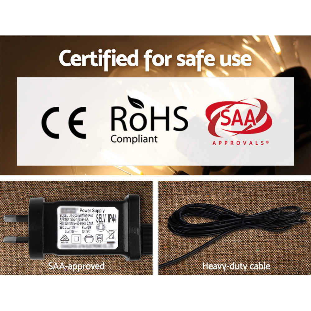 Regular price $169.00Our Jingle Jollys Festoon String Lights are great not only for wedding and birthday parties or special events, but also for creating a warm, inviting ambience with its bright and mellow glow. Suitable for both indoor and outdoor use, its IP44 rating means that it can be used in the rain and all weather conditions. Each bulb draws a very low voltage and is placed 90cm equally apart from each other throughout its 41m length for an even distribution of illumination and brightness. Not least, the each bulb has a 20,000 hours lifespan so that you can get to use the string lights for quite a while.