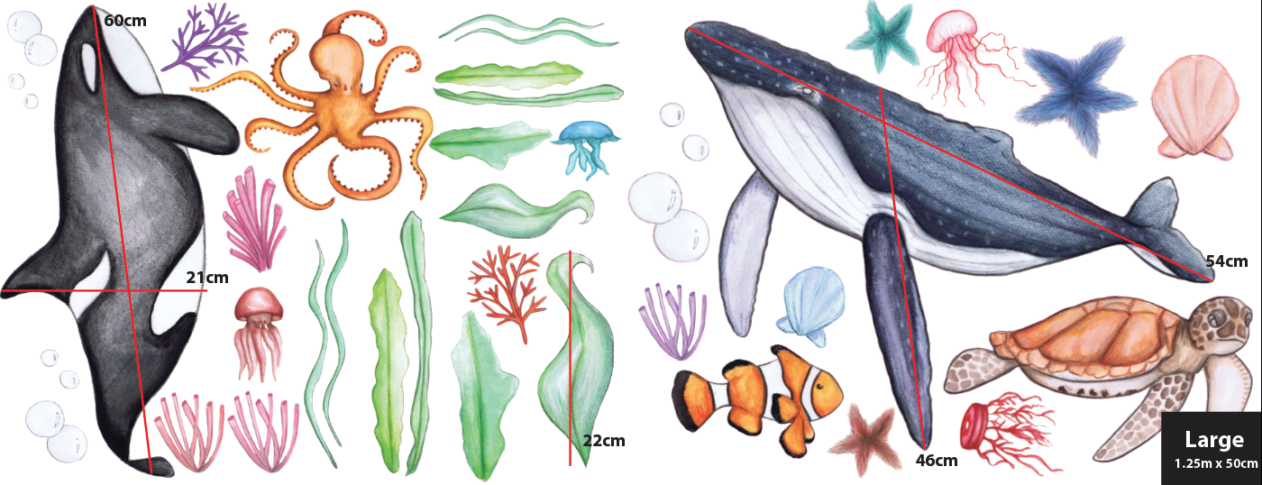 Our wall decals are designed by illustrator Mads Francis and printed in Australia using eco-friendly, non-toxic materials so you can place them in your kid's room without worry. We print on a non-vinyl, self-adhesive, super easy to apply, and completely removable material, so whether you rent or own, you can decorate without the stress of causing any damage to your precious walls!