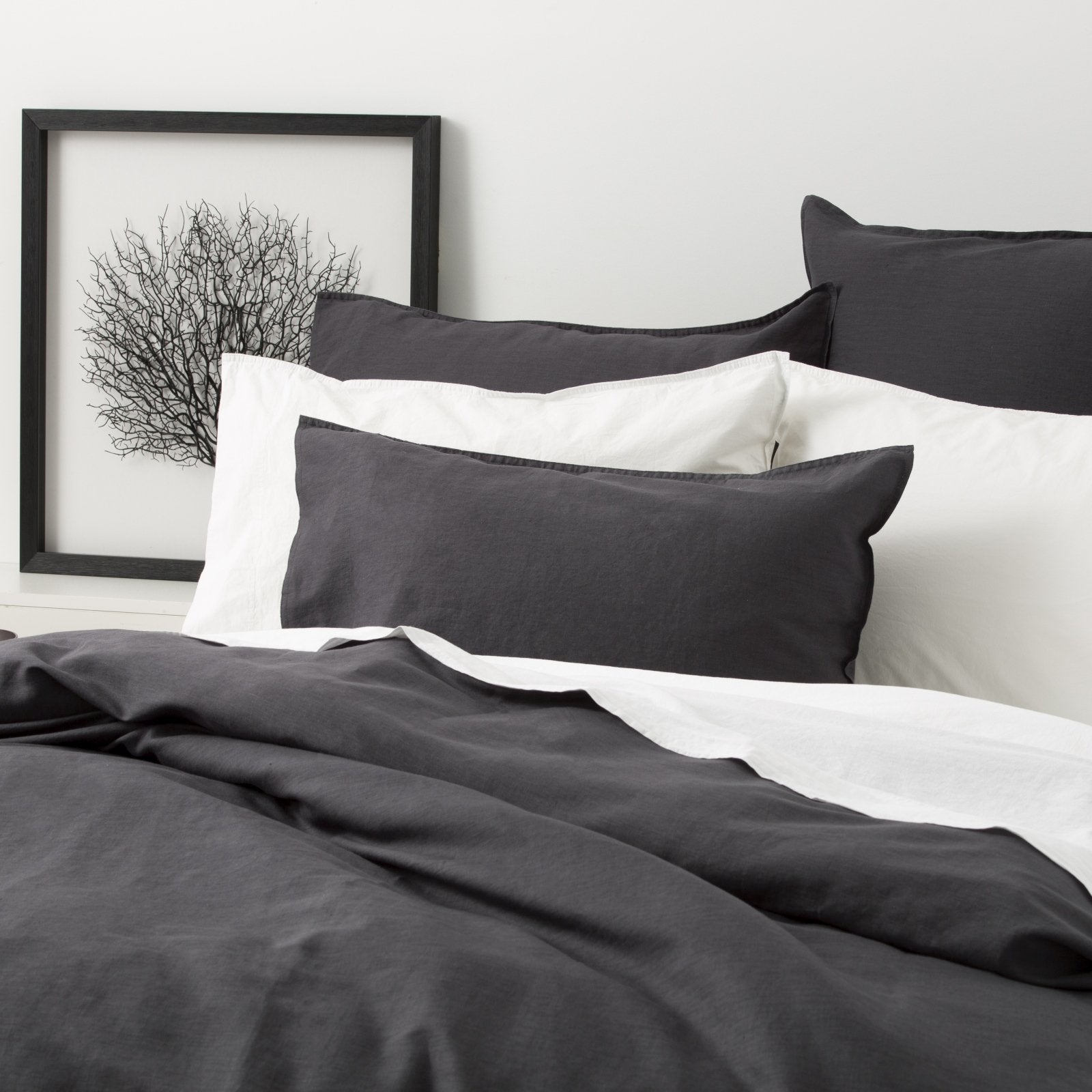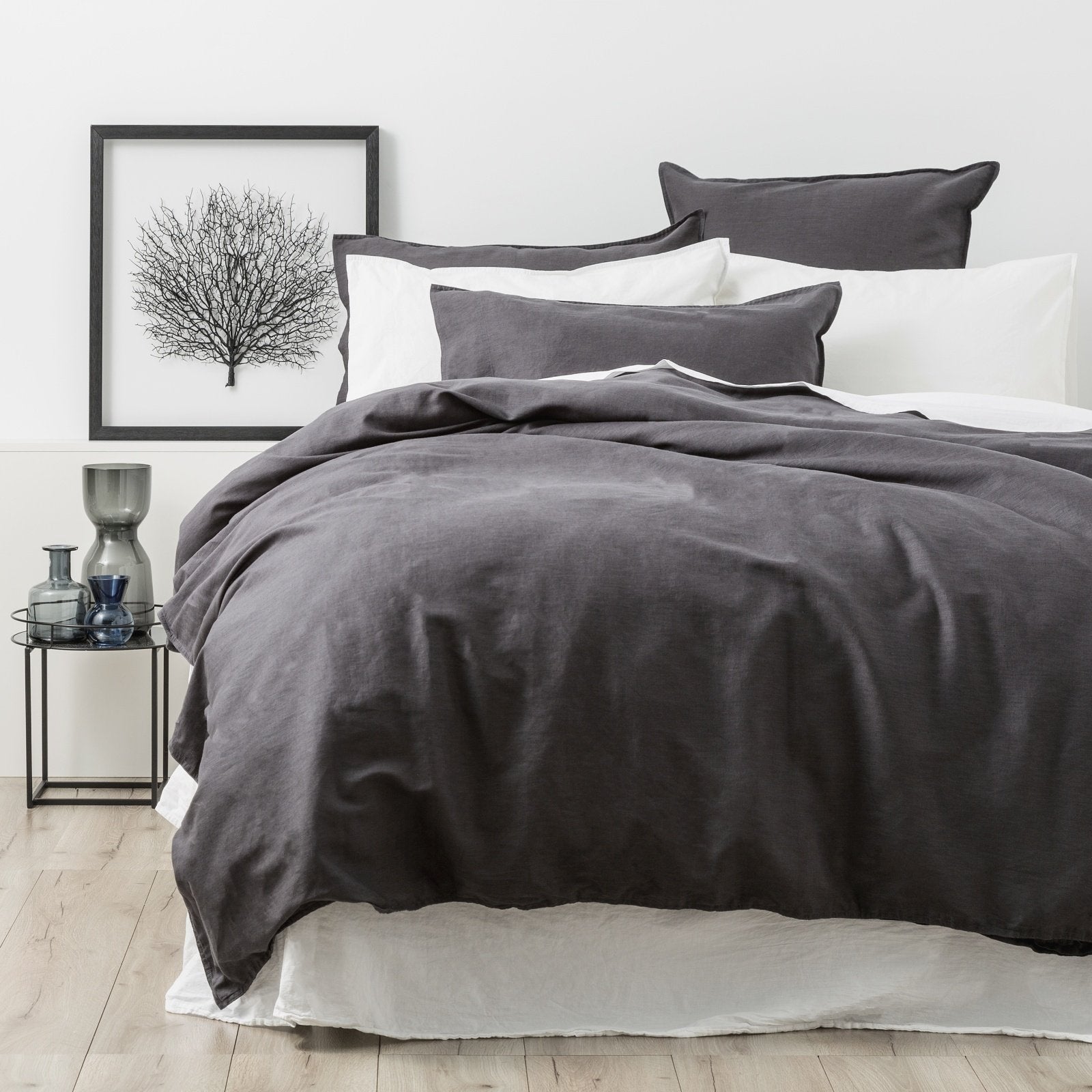 Renee Taylor Cavallo Stone washed 100% Linen Quilt Cover Set - Magnet