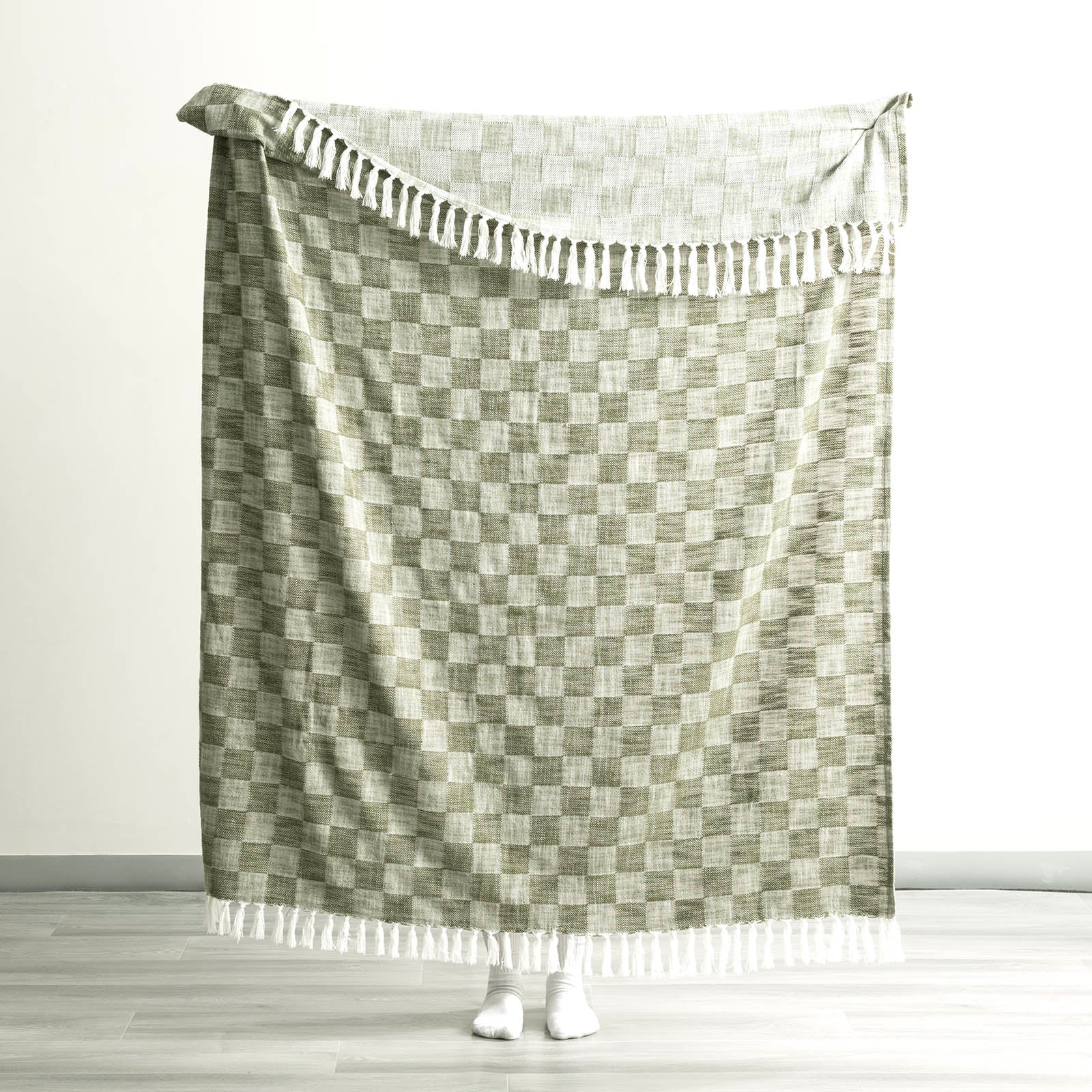 Nevis stone washed cotton throw have a wonderful woven texture with fringe borders and are generous size. It features a two-tone checkered pattern, making it classically elegant and versatile for all four seasons. This throw can be used for layering, whether you need to add or remove warmth. Perfect for adding a splash of colour & texture to both simple and profound spaces. The product's packaging is biodegradable and environmentally friendly, and the throw is proudly "Made in Green."