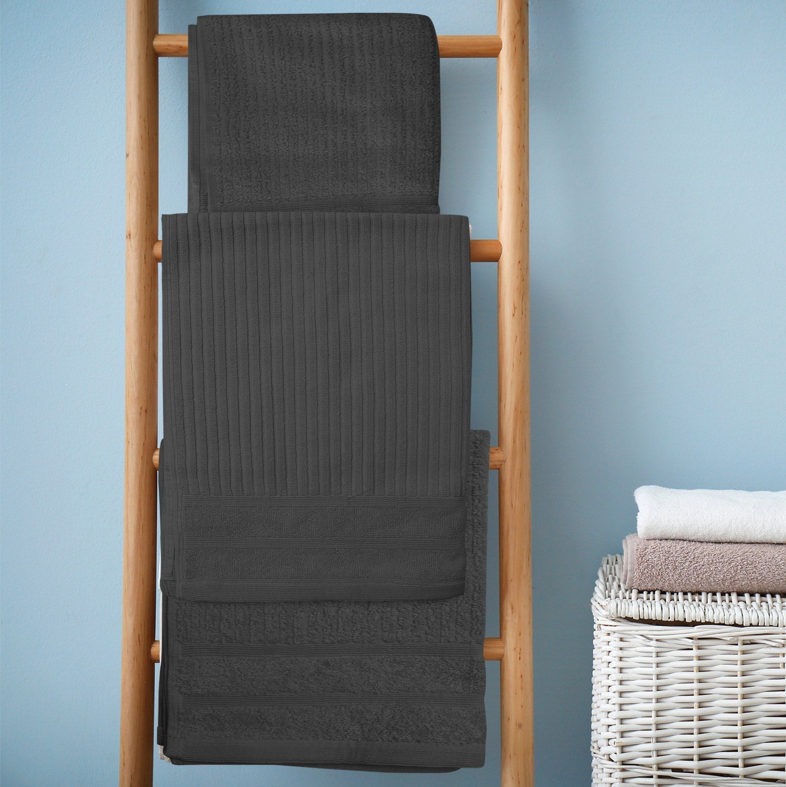 Royal Comfort Eden Cotton 600GSM Luxury Bath Towels Set - 8 PEICE SET - GRANITE