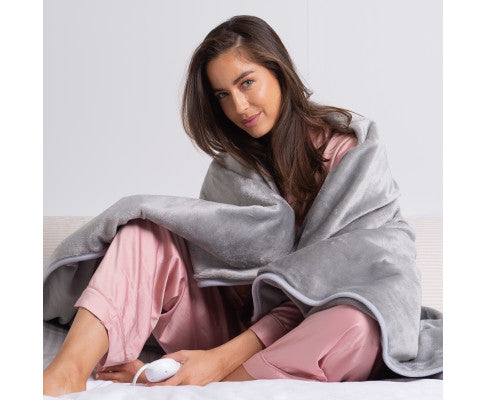 Royal Comfort Heated Faux Fur Throw Fleece Electric Blanket Double-Sided - Grey Royal Comfort