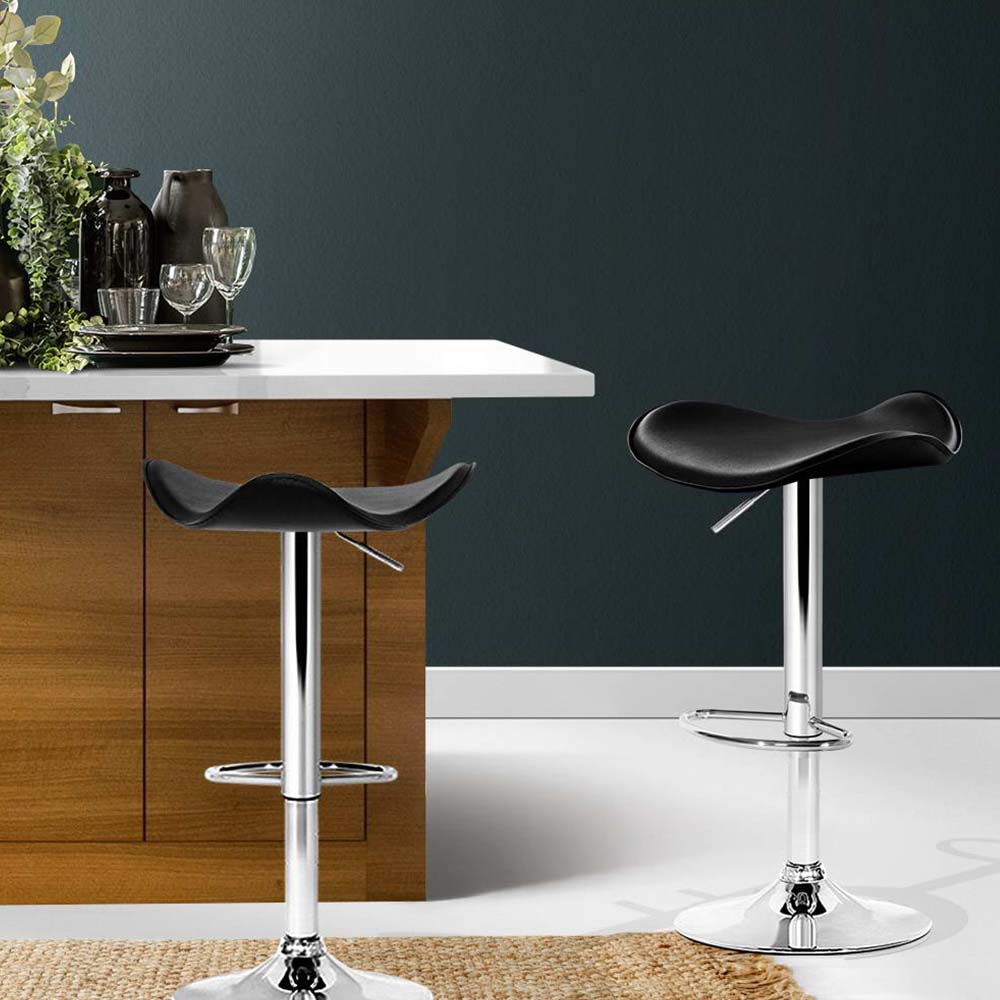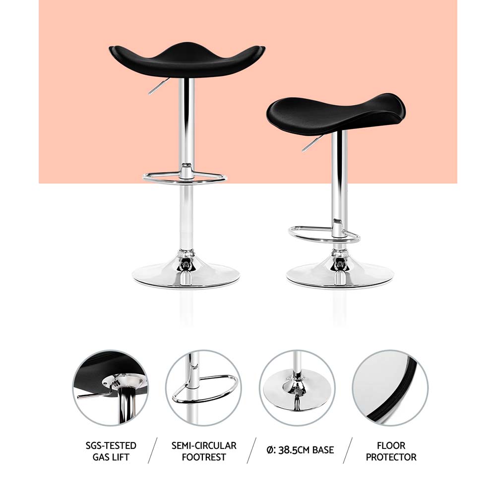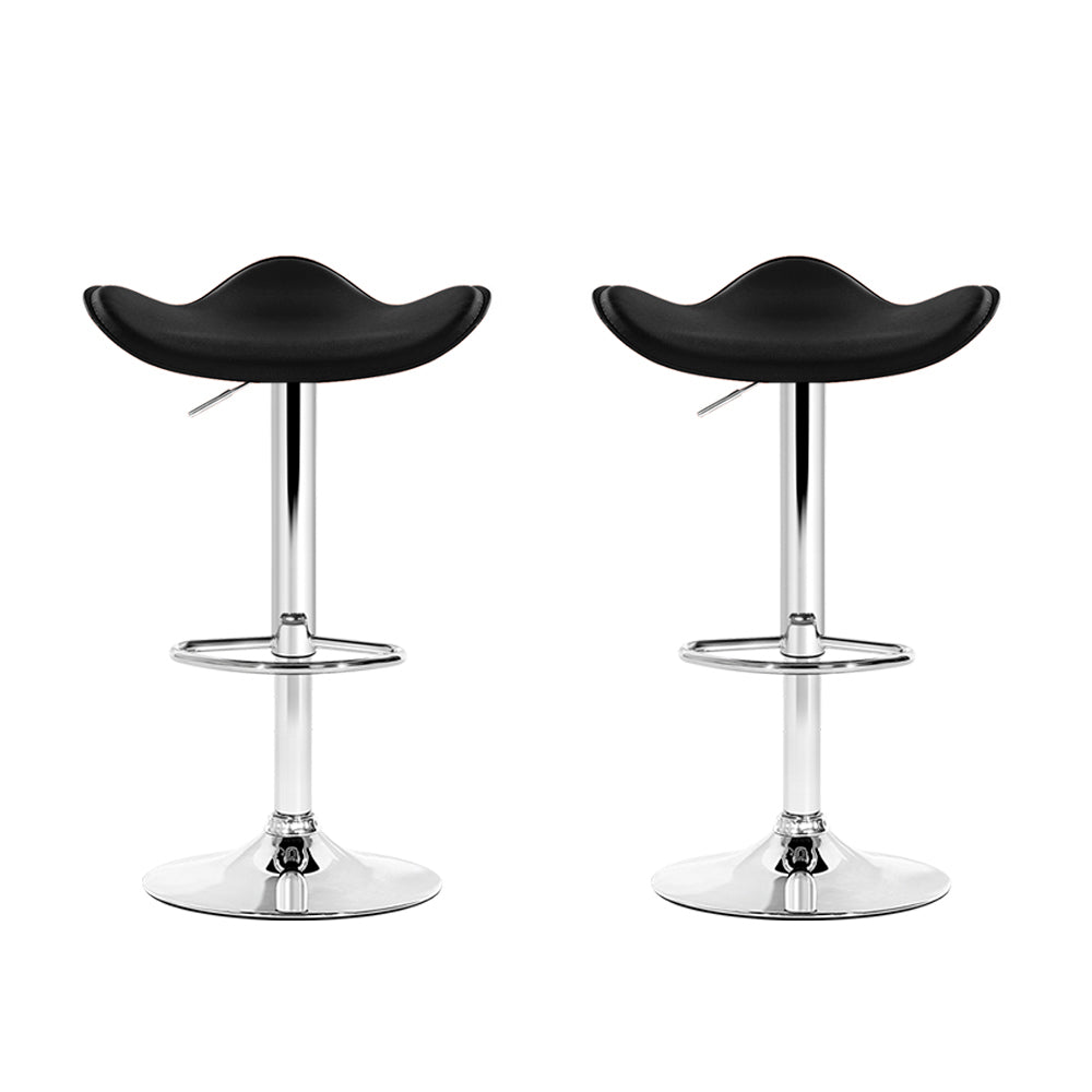 Artiss Set of 2 Gas Lift Bar Stools PU Leather - Black and Chrome