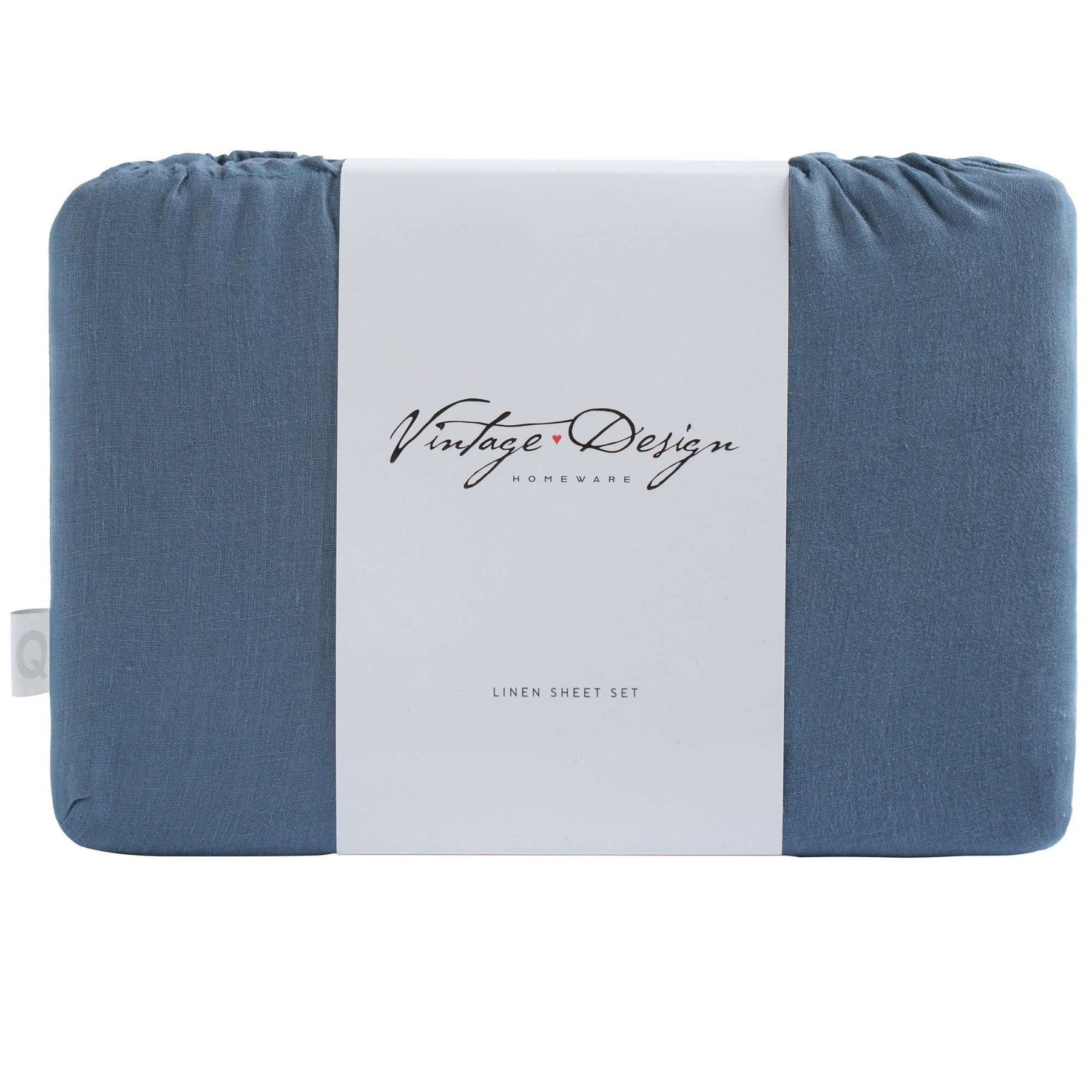 Vintage Design Brilliant Blue 100% Linen Quilt Cover Set