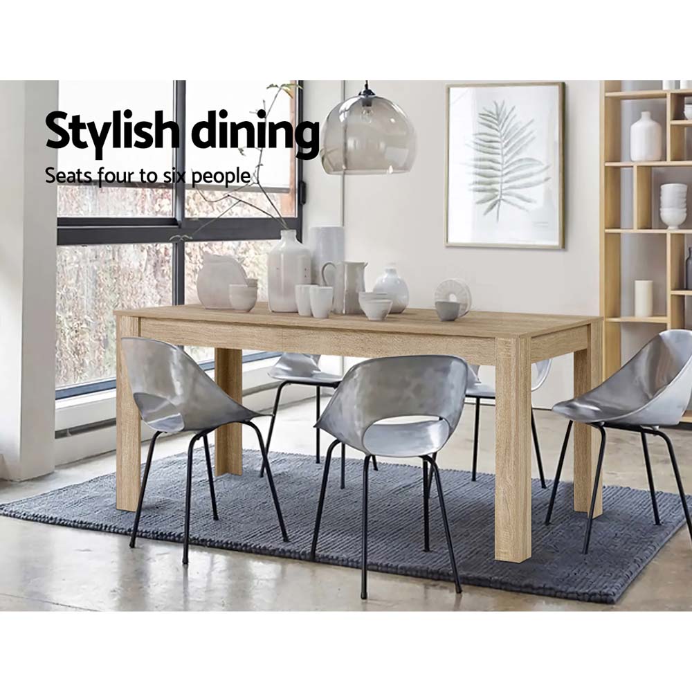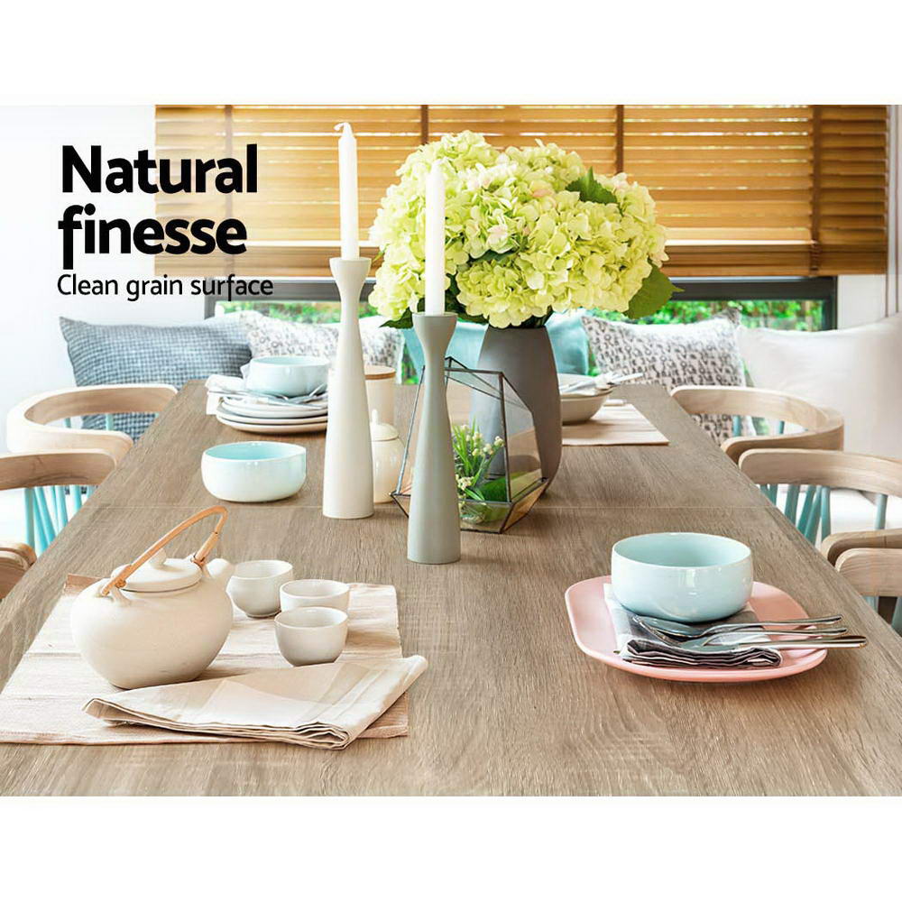 Regular price $229.00If you are looking for a simple wooden dining table that seats six to eight people, our Artiss NATU Dining Table is what you are after. The dining table has a beautiful natural woodgrain finish and will blend in perfectly with your decoration. Made from 15mm thick particle board, the dining table is exceptionally thick and offers a very solid and chunky feel. In other words, the table will last through decades of robust use and still retain its strength and character. And dare we say; it will look even better with age. Not least, the entire table is further reinforced with heavy-duty fixings and anti-slip base to present a dining table that is never short on reliability nor durability. Match with the NATU Dining Bench for the complete natural look.