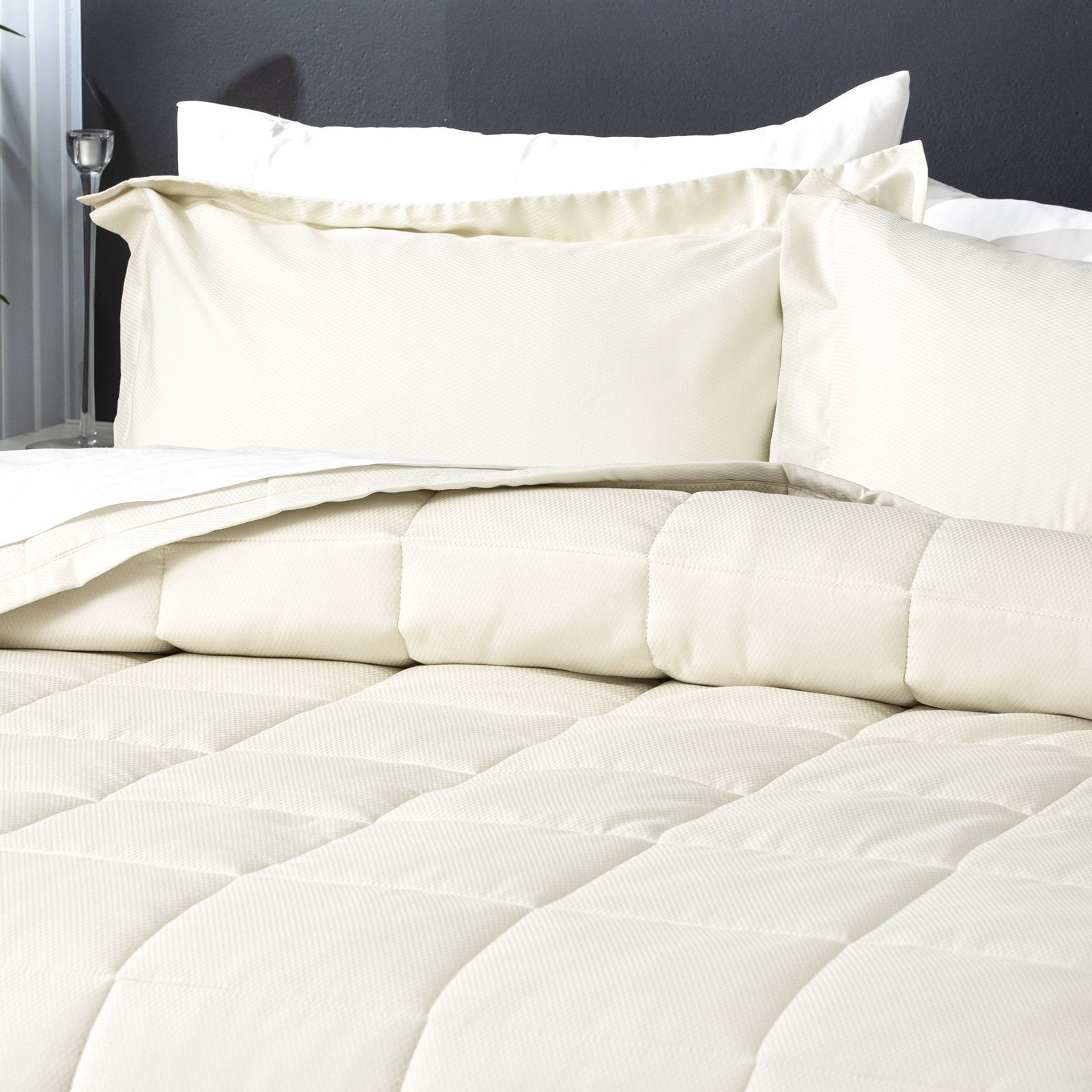 Light, soft, breathable, and pleasant to the touch, Our Ddecor Cotton Jacquard Comforter sets is the leisureliest way to dress up the bedroom for any occasion, any season, all year around. This Checks comforter is made of 500 thread count 100% jacquard cotton fabric with a Polyester filling of 300 gsm. The threads used is dense and soft, they are made only from long cotton fibres collected by hand. The comforter does not require the hassle of care, easy to wash at home and dries quickly, which provides high hygiene. Key Features: 500 thread count 100% jacquard cotton fabric on both the sides Polyester filling of 300 gsm Detailed edging border with double stitching is delightful Complemented by tailored pillow shams Can be used as lightweight summer bedspread or layered with quilt in winter Simple modern gift idea to family & friends Size: Queen Bed: 240 x 220 cms & 2 x pillow Shams - 48 x 74 + 5 cms King Bed: 260 x 220 cms & 2 x pillow Shams - 48 x 74 + 5 cms Super King Bed: 280 x 240 cms & 2 x pillow Shams - 48 x 74 + 5 cms Wash Care: Wash Separately before use. Wash dark colours separately Cold, gentle Machine Wash. Line Dry, do not tumble dry. Warm Iron If desired. Do not wring. Do Not Bleach. Do not Dry Clean (x). Made In India.