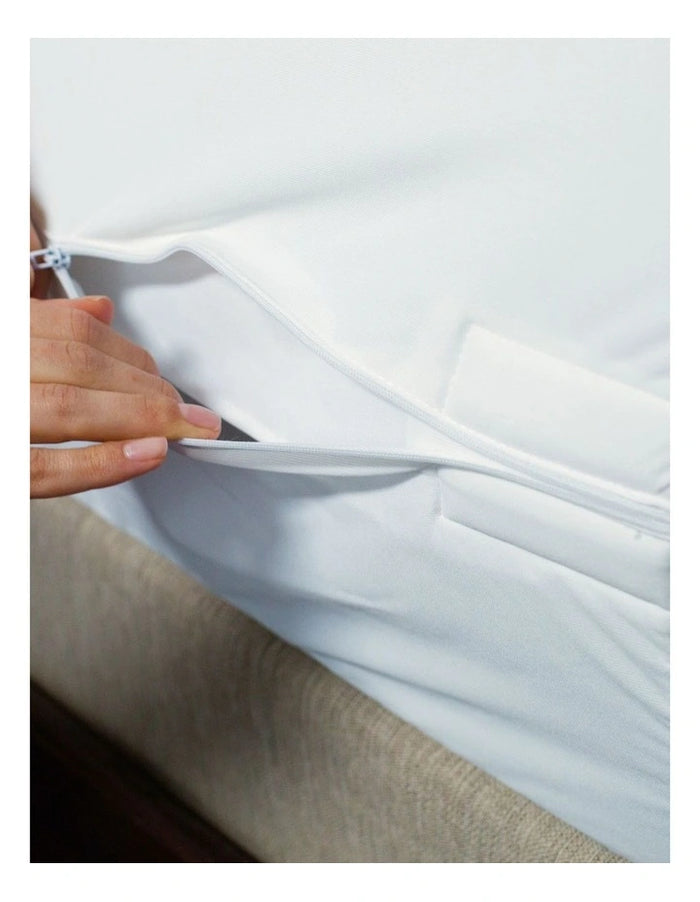 Ultimate bed bug defense with buglock zipper system, featuring a secure and tamper-proof secure seal which prevents unwanted access to the mattress. Fully encasing the mattress, it has a simple zipper system and slides over like a sleeve.