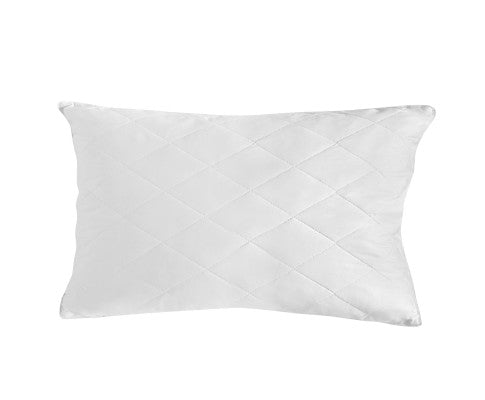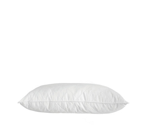 The pillow is encased in a subtly-textured diamond quilting that is made from 100% cotton and provides a medium-firm support, that is suitable for side and back sleepers.