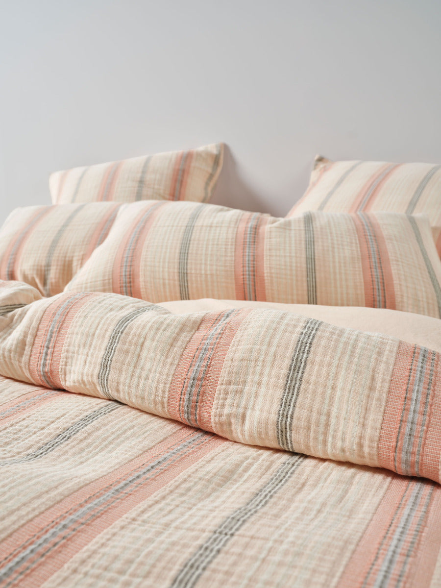 Complete this coastal-inspired aesthetic by pairing it with matching European pillowcases.