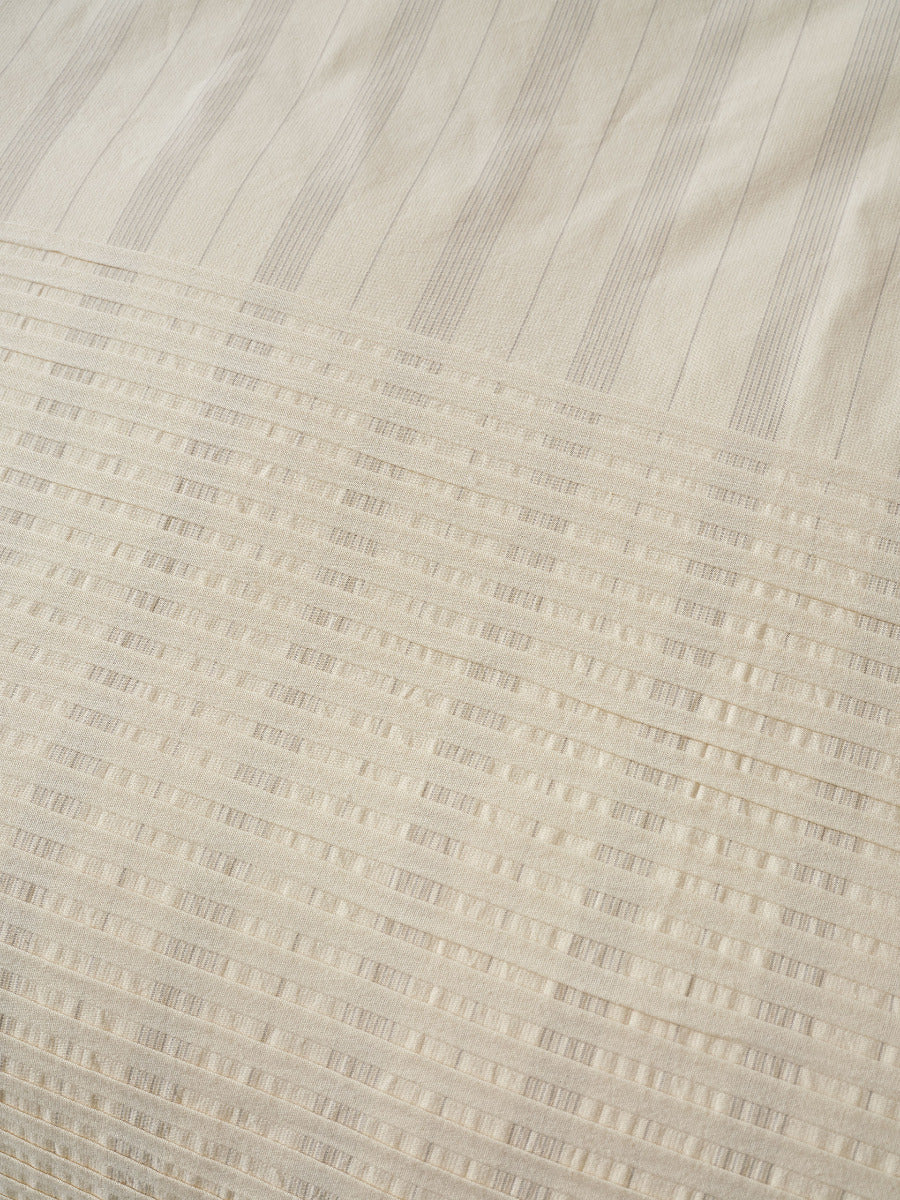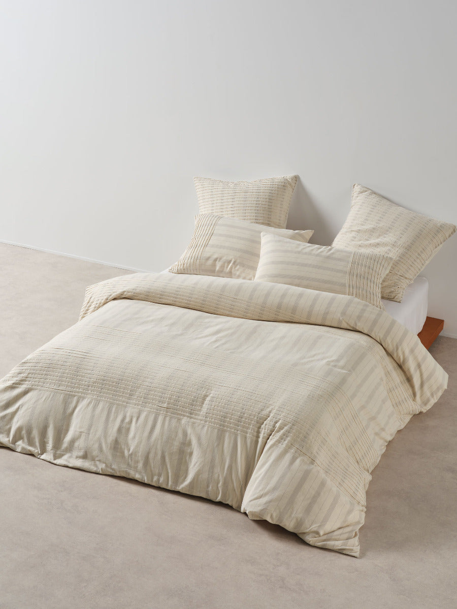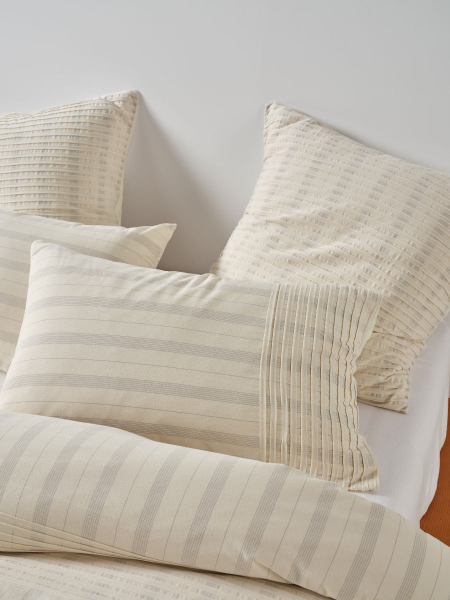 Adorned with vertical stripes in neutral shades, this set includes pleats woven in at intervals, for a charming hint of texture, and volume.