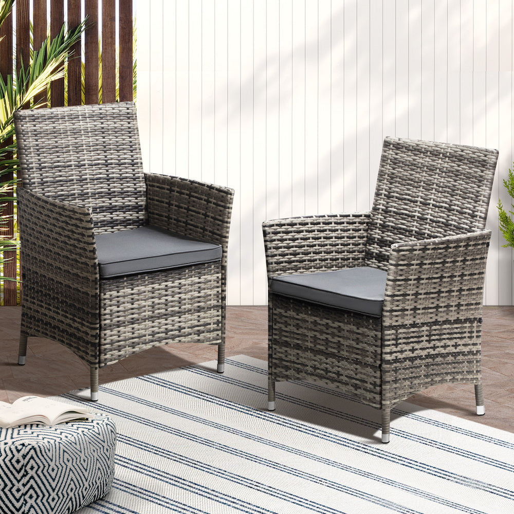 2X Outdoor Patio Chairs Rattan Grey