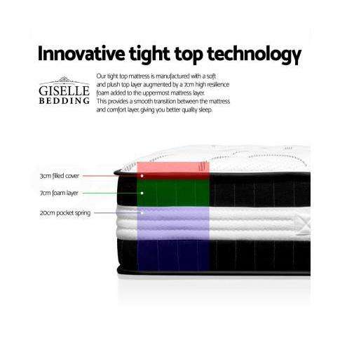 Covered with premium Belgium knitted fabric for unsurpassed softness and body heat dissipation, the Giselle Bedding Firm Mattress is also highly breathable and dust mite and mould-resistant with no necessity to turn over the mattress unlike other inferior alternatives. Handy side handles enables you to position the mattress easily.