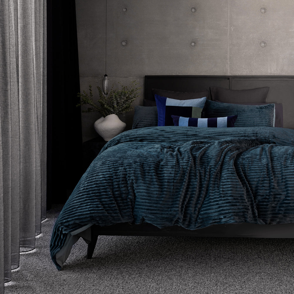 Regular price $169.00 Sale price $137.08 Save 19%The Channel quilt covers are incredibly soft and plush, offering luxurious comfort. These plain-coloured sets feature a velour stripe pattern for added texture and style. The reverse side is made from cotton percale fabric in a complementary tone, providing a smooth, breathable finish next to your skin.