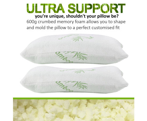 • 2 x Royal Comfort Bamboo-Covered Memory Foam Pillows (1 x twin pack)