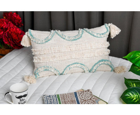 Tassels Linen Cushion Cover 30*50cm Beige Pillow Cover Handmade Boho rustic decor cream Moroccan Cushions Hand Tufted Cushion Lumbar Pillow
